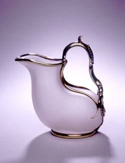 A claret jug's intrinsic value lies in the complexity and scarcity of the design. Although elaborate containers for pouring wine can be traced to ancient Egyptian times, Kent explains that not until the early 19th century was glass manufacturing perfected in Europe, allowing wines to be preserved in uniform bottles. "Silversmiths and glassblowers combined their skills, and with the evolution of new techniques particularly molded glass produced an object that was not complete until the two crafts were combined," he says.