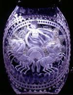 This WIlliam IV Silver gilt and frosted glass jug was made by the London firm of Storr & Mortimer in 1836. The "Askos" design, derived from Greco-Roman pottery vessels, was popular from the 1830s to the 1850s. |